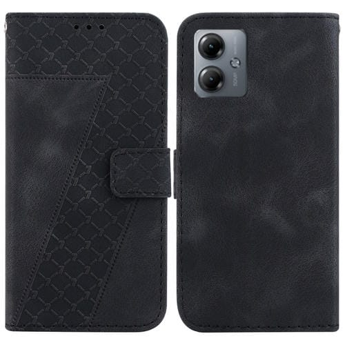 Funda de Cuero para Motorola Moto G14 con Relieve en Forma de 7 (Negro)