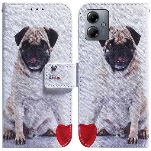 Funda de Cuero para Motorola Moto G14 con Tapa y Dibujo Coloreado (Pug)