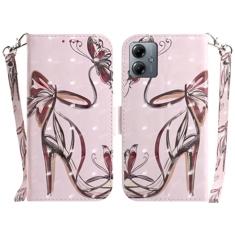 Funda de Cuero para Motorola Moto G14 con Tapa Horizontal 3D (Mariposa de Tacón Alto)