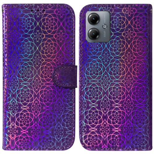 - 1x Funda de Cuero para Motorola Moto G14 con Hebilla Magnética Colorida (Púrpura)