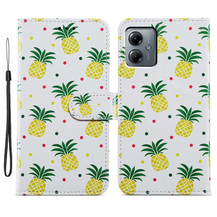 Funda de Cuero para Motorola Moto G14 con Tapa Horizontal y Patrón Pintado (Piña)