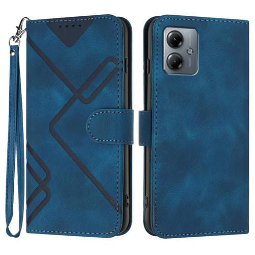 Funda de Cuero para Motorola Moto G14 Line Pattern Skin Feel para Teléfono (Azul Real)