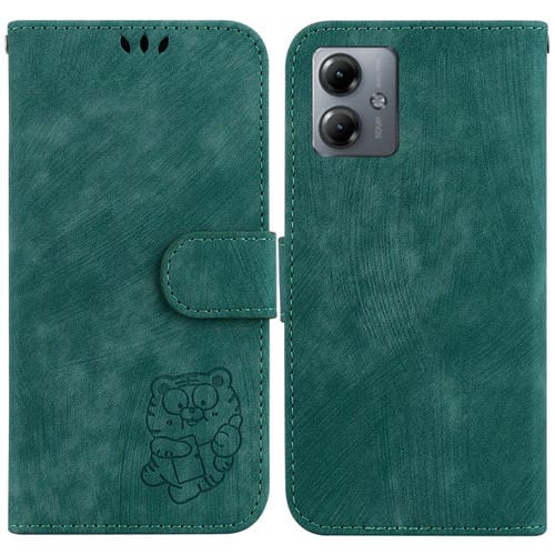 Funda de Cuero en Relieve para Motorola Moto G14 Little Tiger (Verde)