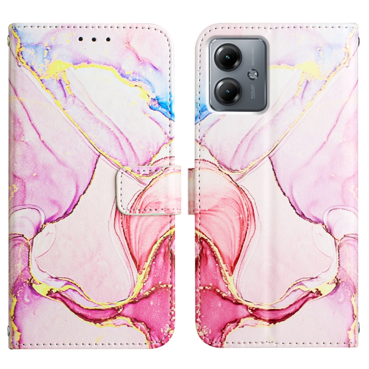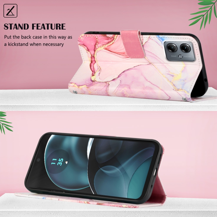 Funda de Cuero para Motorola Moto G14 Pt003 con Tapa y Patrón de Mármol (Ls005)