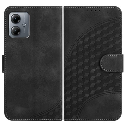 Funda de Cuero para Motorola Moto G14 Yx0060 con Relieve y Cabeza de Elefante con Cordón (Negro)