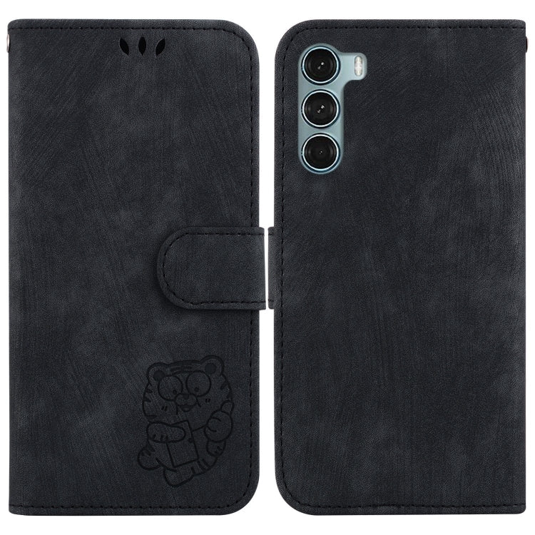 Funda para Motorola Moto G200 5G Edge S30 de Cuero con Relieve Little Tiger (Negro)