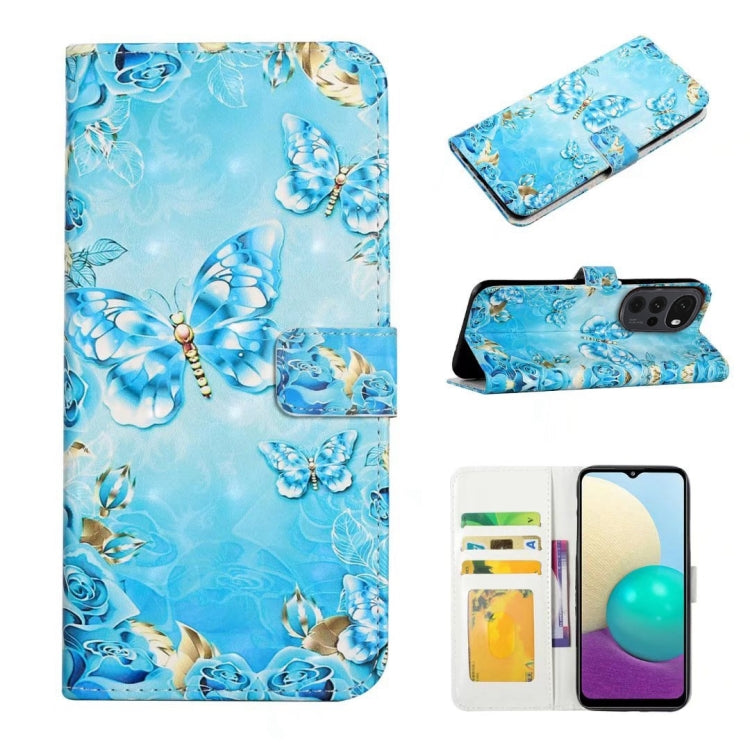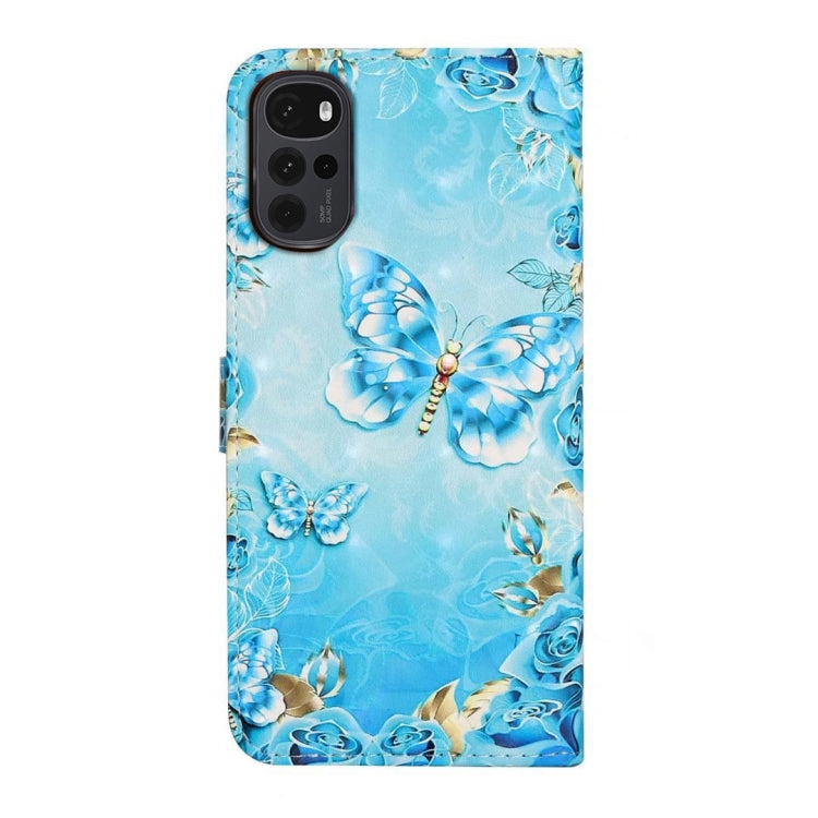 Funda de Cuero para Motorola Moto G22 con Dibujo 3D en Relieve al Óleo (Mariposas Azules)