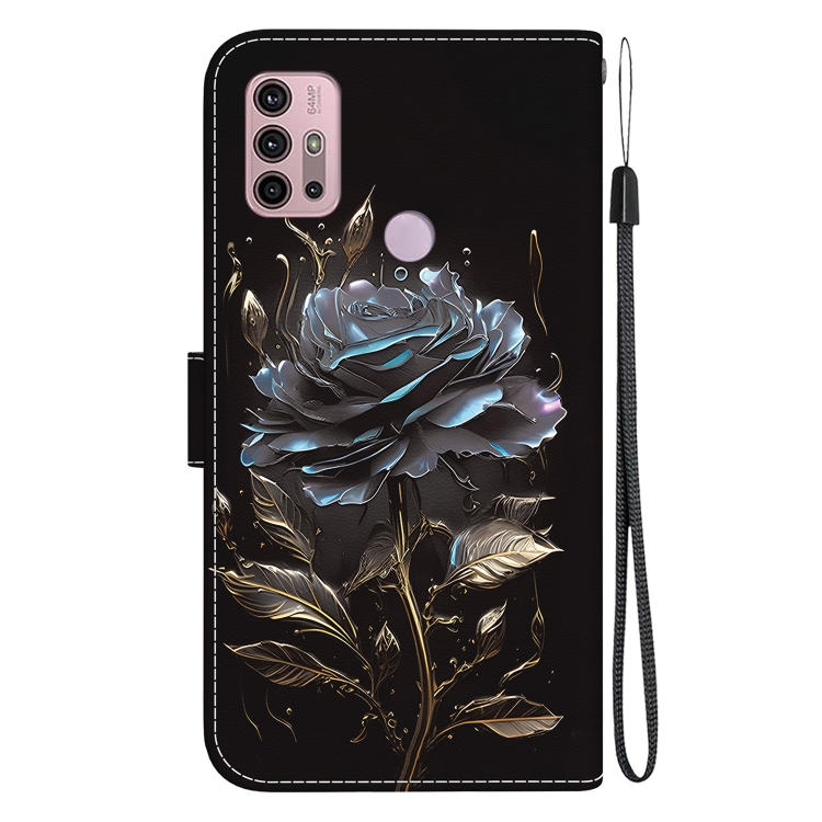 Funda para Motorola Moto G30 G10 G20 Cuero con Dibujo Coloreado y Textura de Cristal (Rosa Negra)