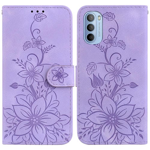 Funda para Motorola Moto G31 / G41 de Cuero con Relieve Lily (Púrpura)