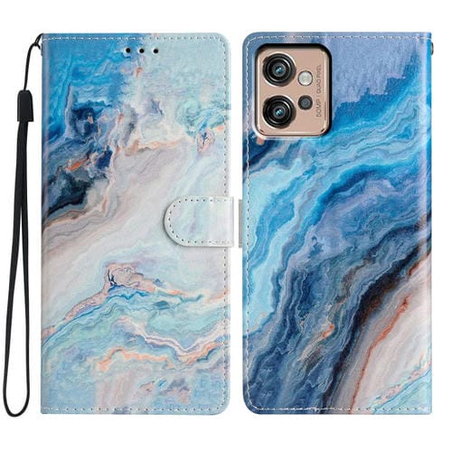 Funda de Cuero para Motorola Moto G32 con Dibujo Coloreado (Mármol Azul)