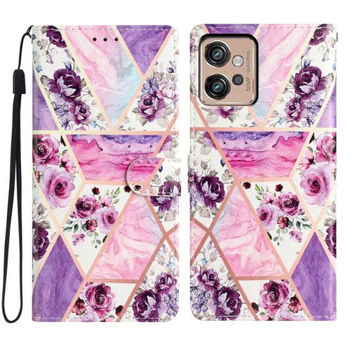 Funda de Cuero para Motorola Moto G32 con Dibujo Coloreado Mármol (Morado)