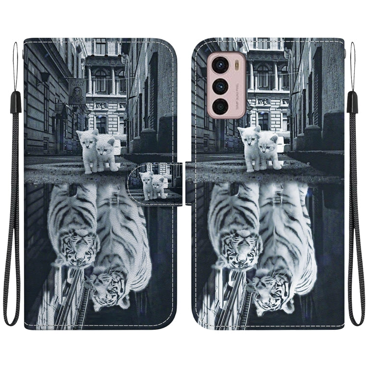 Funda de Cuero para Motorola Moto G42 con Dibujo Coloreado y Textura de Cristal (Reflejo de Tigre de Gato)
