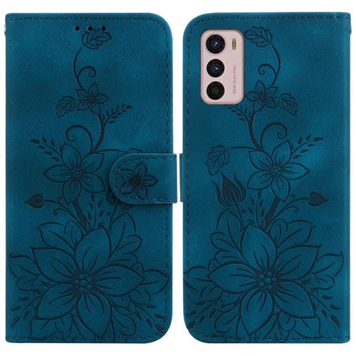 Funda de Cuero con Relieve Lily para Motorola Moto G42 (Azul Oscuro)