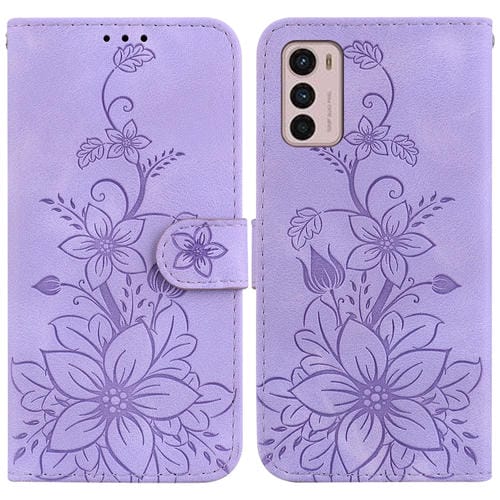 Funda de Cuero con Relieve Lily para Motorola Moto G42 (Púrpura)