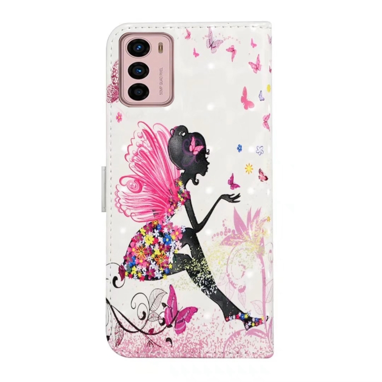 Funda de Cuero para Motorola Moto G42 con Dibujo 3D en Relieve al Óleo (Hada de Flores)