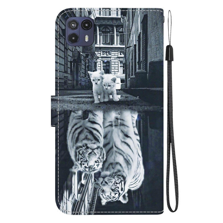 Funda de Cuero para Motorola Moto G50 5G con Dibujo Coloreado y Textura de Cristal (Pensamientos Azules)