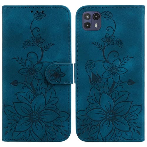 For Motorola Moto G50 5G Lily Embossed Leather Phone Case(Dark Blue)