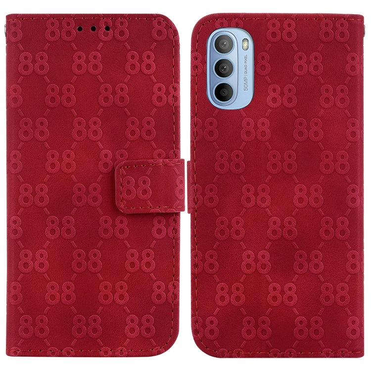 - 1x Estuche para Motorola Moto G51 de Cuero en Relieve con Doble Forma de 8 (Rojo)
