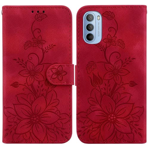 Funda de Cuero con Relieve Lily para Motorola Moto G51 (Rojo)