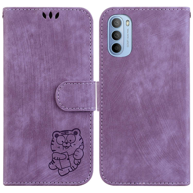 Funda para Motorola Moto G51 de Cuero con Relieve Little Tiger (Púrpura)
