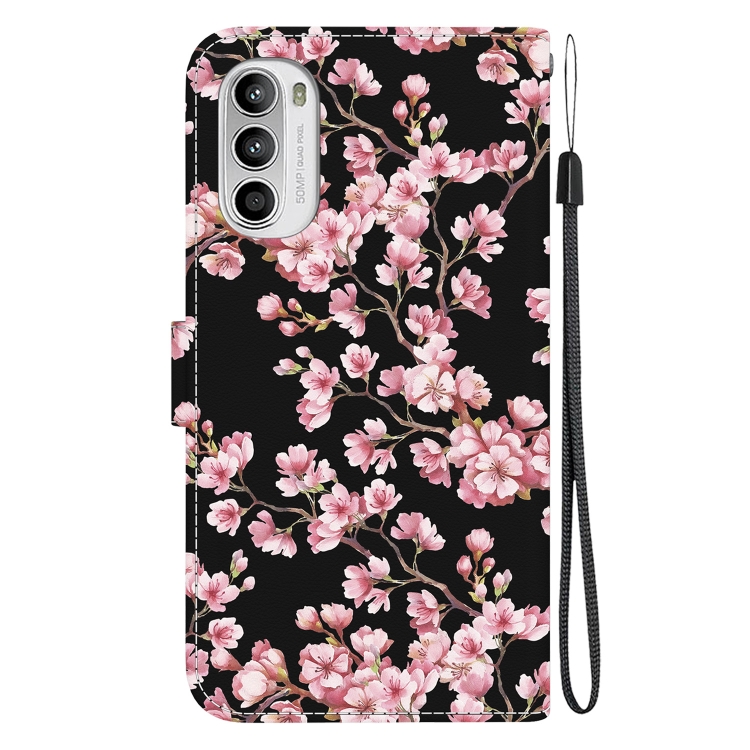 Funda de Cuero para Motorola Moto G52 con Dibujo Coloreado y Textura de Cristal (Flor de Ciruelo)