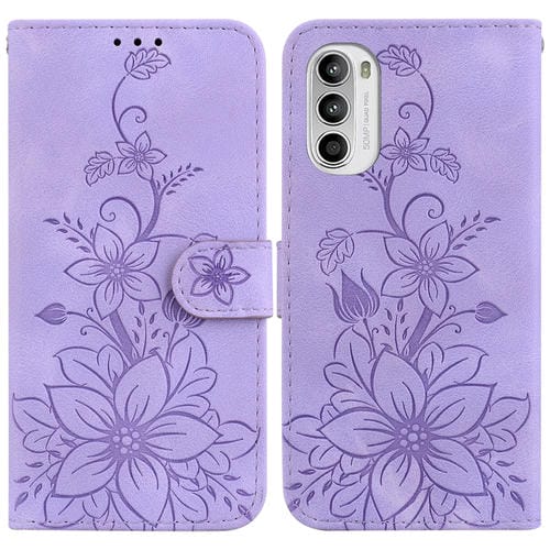 Funda de Cuero con Relieve Lily para Motorola Moto G52 (Púrpura)