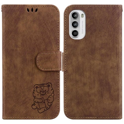 Funda para Motorola Moto G52 de Cuero con Relieve Little Tiger (Marrón)