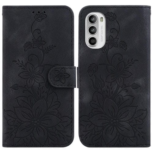 Funda de Teléfono Motorola Moto G52J Versión Jp Cuero con Relieve Lily (Negro)