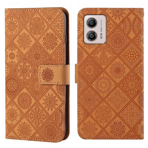 Funda de Teléfono Motorola Moto G53 Cuero con Patrón en Relieve Estilo Étnico (Marrón)
