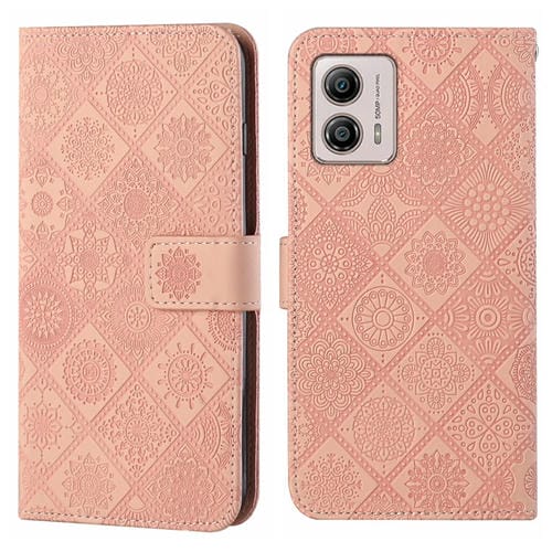 Funda de Cuero para Motorola Moto G53 con Patrón en Relieve Estilo Étnico (Rosa)