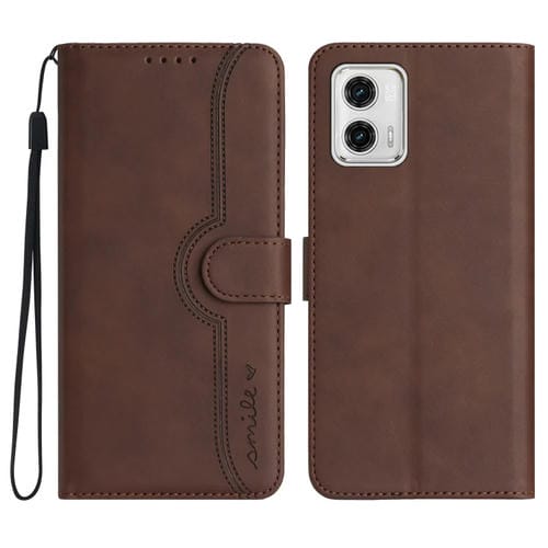 For Motorola Moto G53 / G13 / G23 Leather Phone Case Skin Feeling Heart Pattern Cover (Brown)