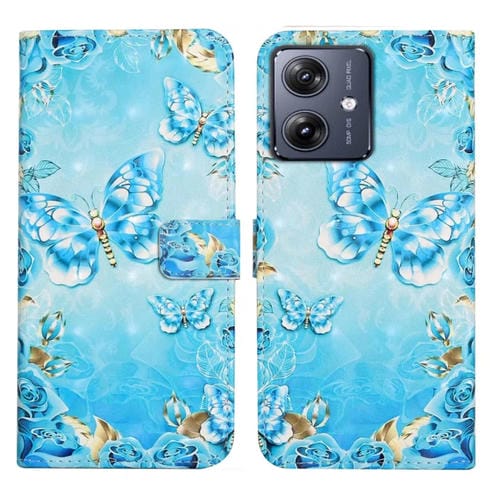 Funda de Cuero para Motorola Moto G54 5G con Dibujo 3D en Relieve al Óleo (Mariposas Azules)