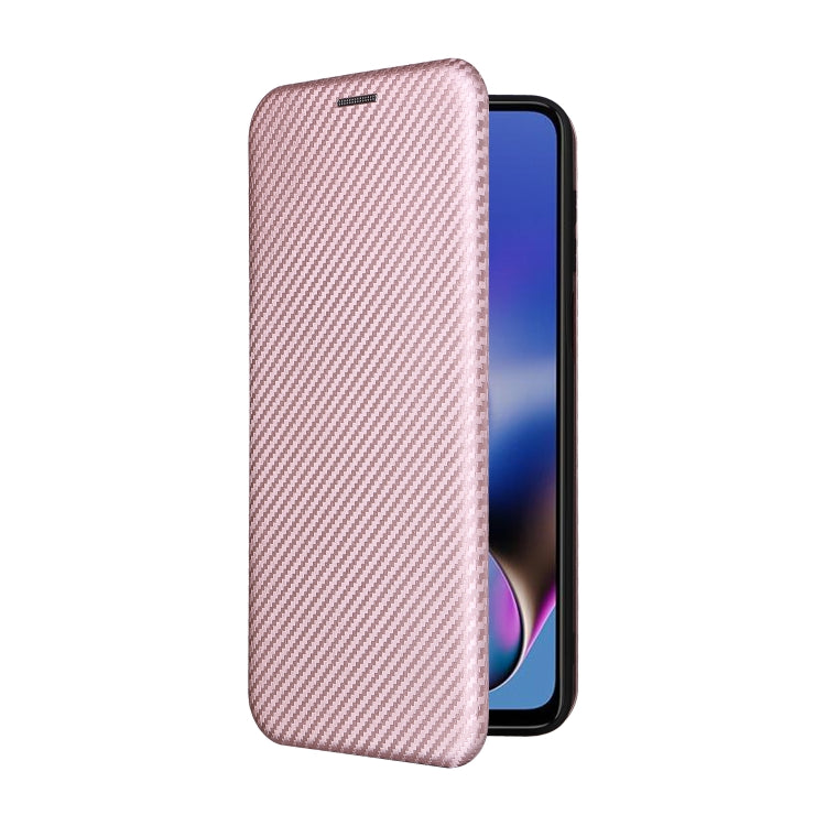 Funda de Cuero para Motorola Moto G54 5G con Tapa y Textura de Fibra de Carbono (Rosa)