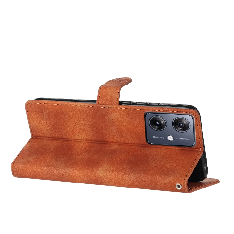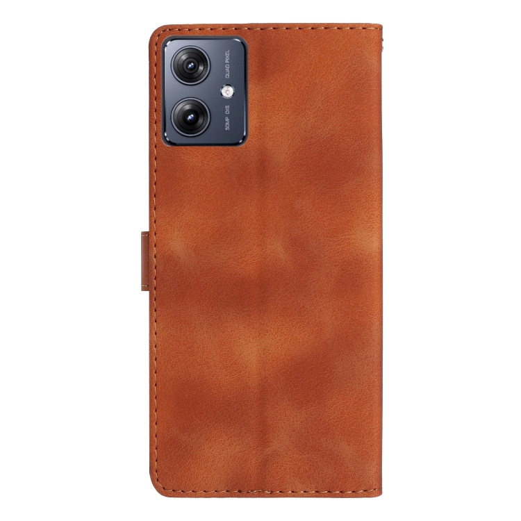 Funda de Cuero para Motorola Moto G54 5G con Estampado de Mariposa y Flor (Marrón)