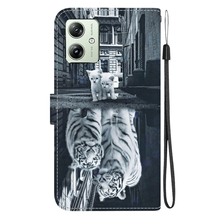Funda de Cuero para Motorola Moto G54 con Dibujo Coloreado y Textura de Cristal (Reflejo de Tigre Gato)