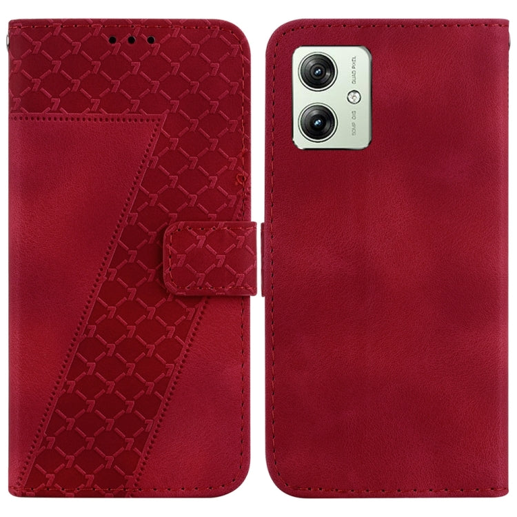 Funda de Cuero para Motorola Moto G54 con Relieve en Forma de 7 (Rojo)