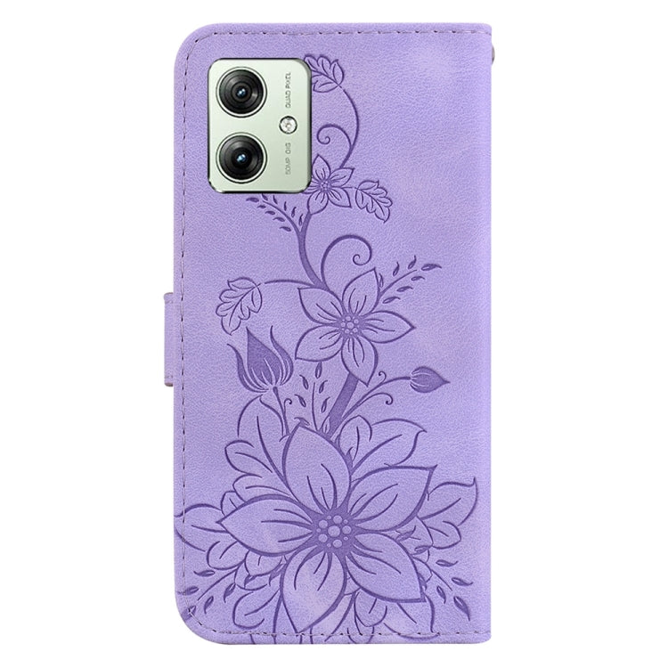 Funda de Cuero para Motorola Moto G54 con Relieve Lily (Púrpura)
