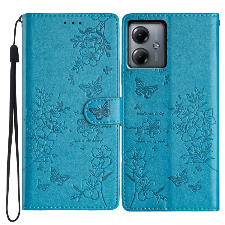 Funda de Cuero para Motorola Moto G54 con Mariposas y Flores (Azul)