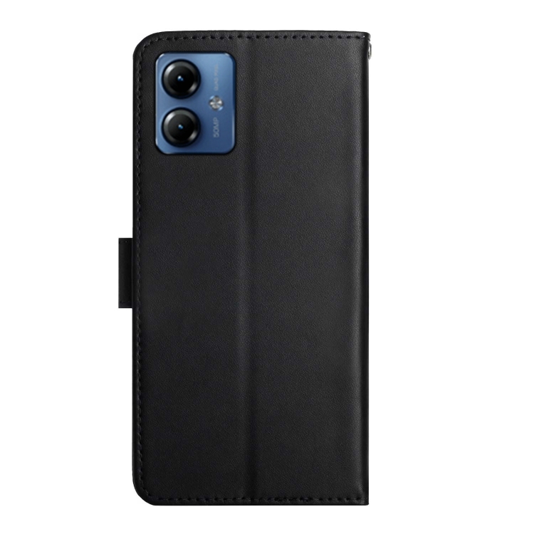 Funda para Motorola Moto G54 con Tapa Horizontal a Prueba de Huellas de Cuero Genuino (Negro)
