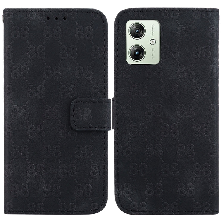 Funda para Motorola Moto G54 de Cuero con Relieve en Forma de 8 Dobles (Negro)
