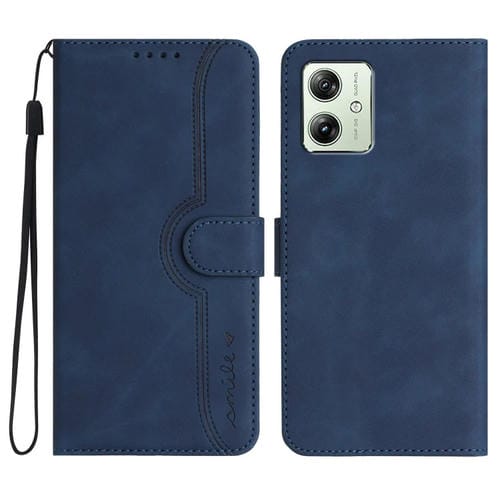 Funda de Cuero para Motorola Moto G54 Global con Patrón Heart Skin Feel (Azul Real)
