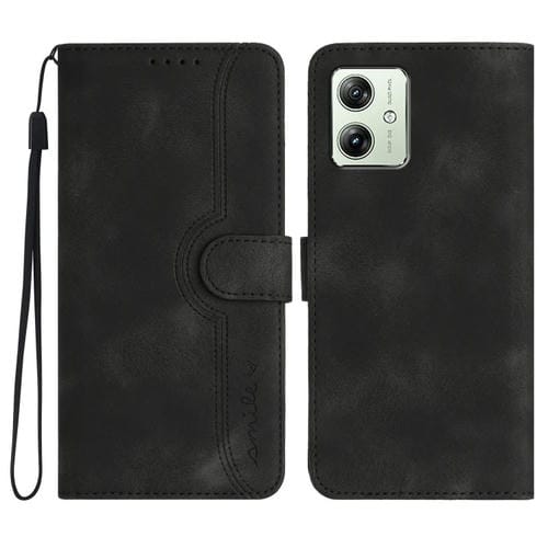 - 1x Funda de Cuero para Motorola Moto G54 Global con Diseño Heart Pattern Skin Feel (Negro)