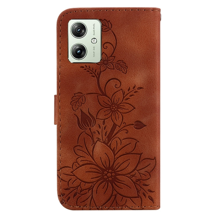 Funda de Teléfono Motorola Moto G54 Lily de Cuero en Relieve (Marrón)