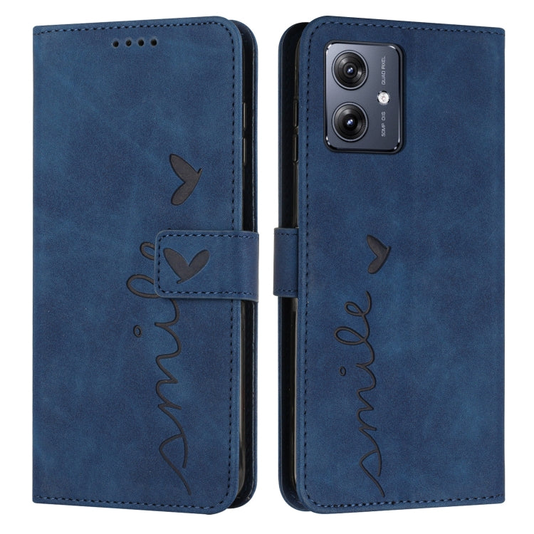 Funda de Cuero para Motorola Moto G54 Skin Feel con Relieve y Cordón Largo (Azul)