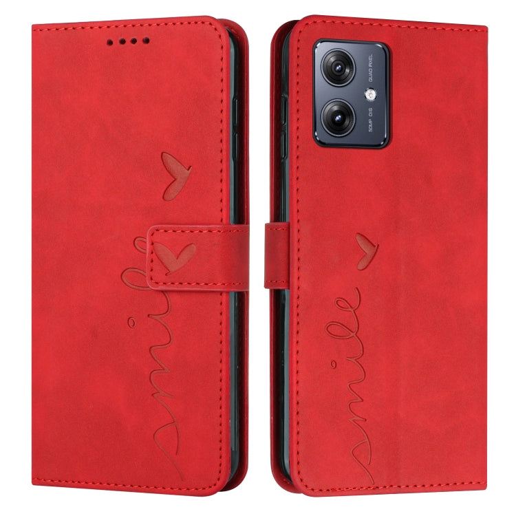 Funda para Motorola Moto G54 Skin Feel Heart Cuero En Relieve con Cordón Largo (Rojo)