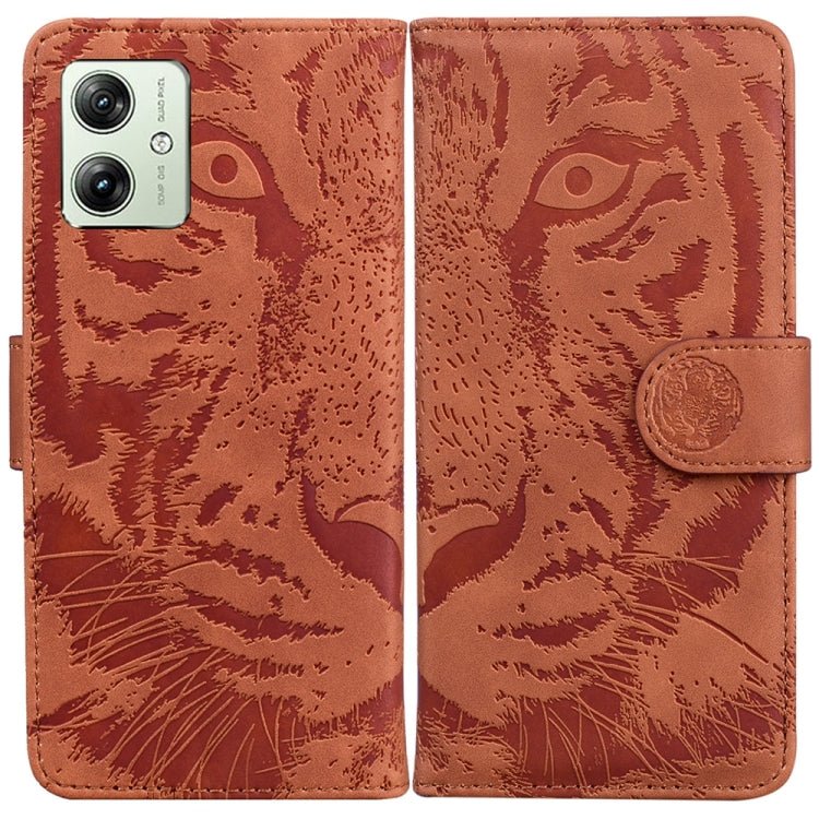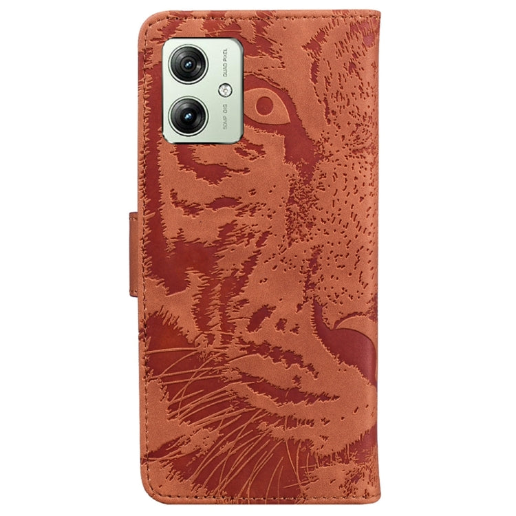 Funda de Cuero para Motorola Moto G54 con Patrón Tiger Embossed (Marrón)