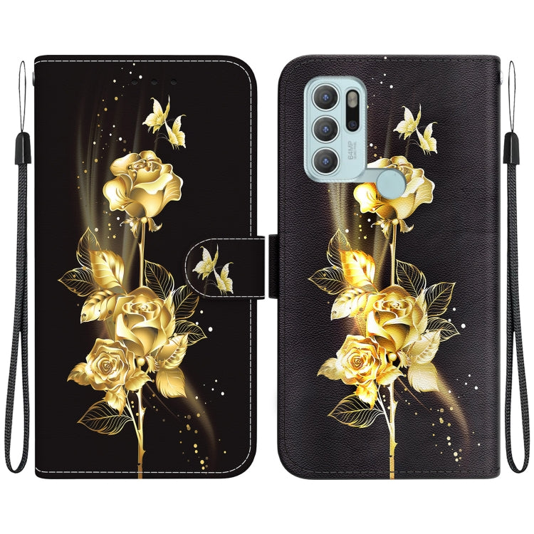 Funda de Cuero Motorola Moto G60S con Dibujo Coloreado y Textura de Cristal (Mariposa Dorada Rosa)