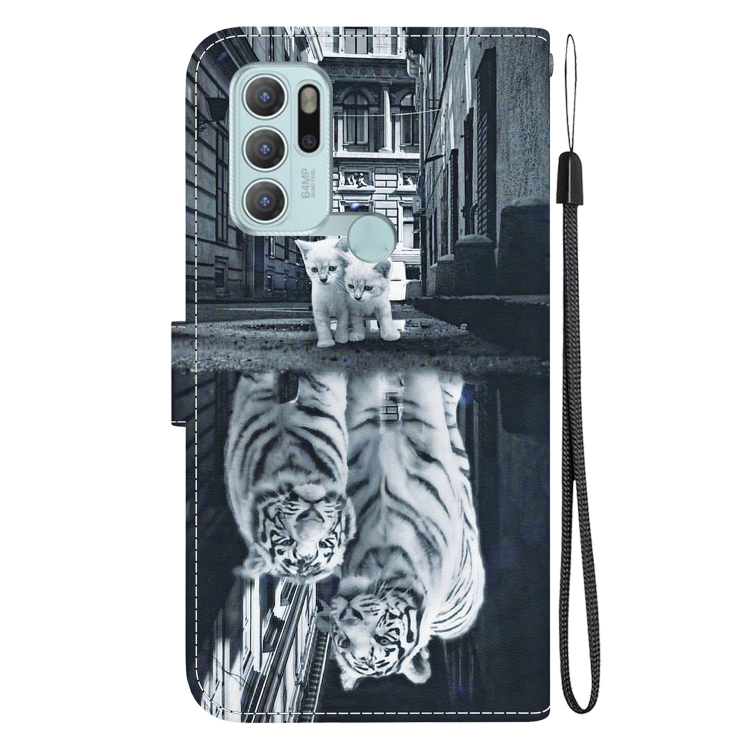 Funda de Cuero para Motorola Moto G60S con Dibujo Coloreado y Textura de Cristal (Reflejo de Tigre Gato)