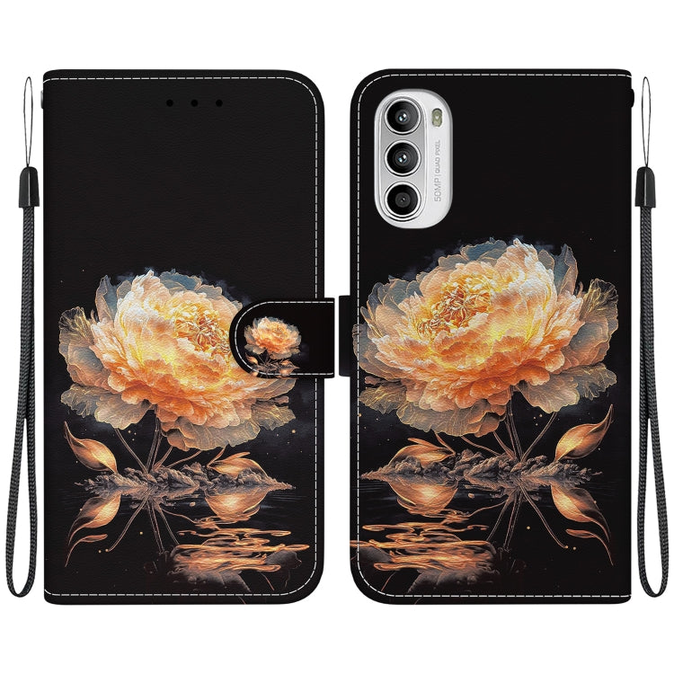Funda de Cuero Motorola Moto G62 5G con Dibujo Coloreado y Textura de Cristal (Peonía Dorada)