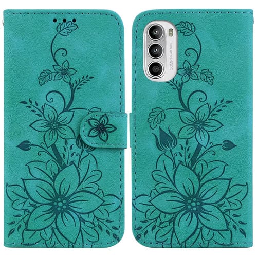 Funda de Cuero para Motorola Moto G62 5G Lily en Relieve (Verde)